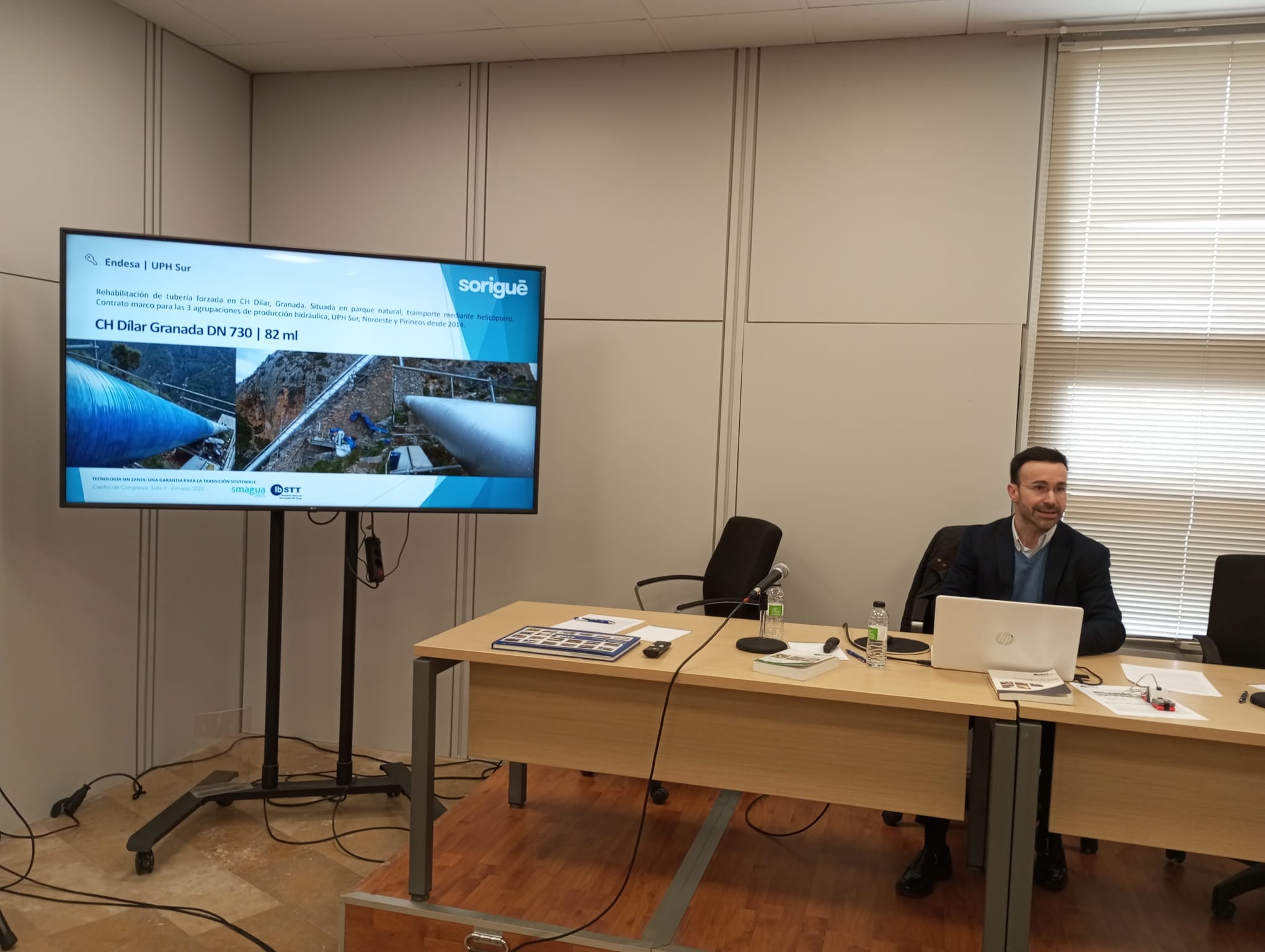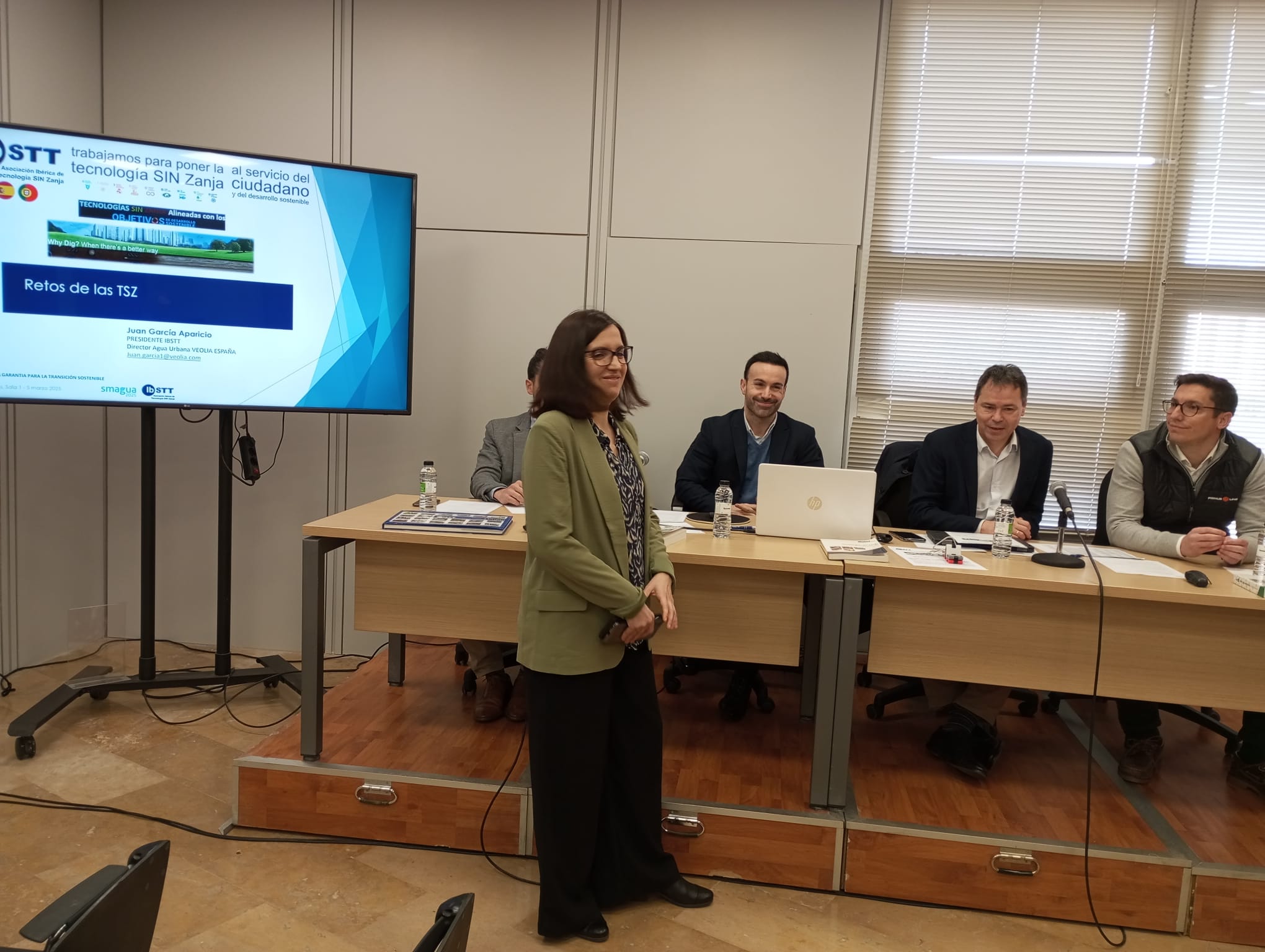 La inauguración corrió a cargo de Cristina López, directora de SMAGUA y Juan García, presidente IBSTT Asociación Ibérica de Tecnología SIN Zanja y Director de Agua Urbana y Redes VEOLIA que comentó los Retos de las TSZ.