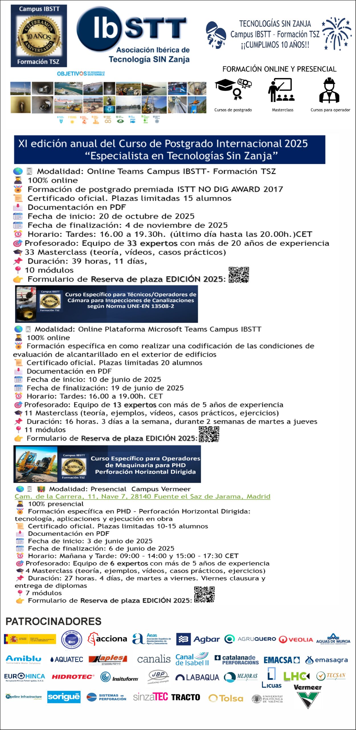Con el patrocinio de VEOLIA, SISTEMAS DE PERFORACIÓN TRACTO, RÄDLINGER PRIMUS LINE GMBH, LICUAS, AMIBLU, INSITUFORM TECHNOLOGIES IBÉRICA, AGRUQUERO THERMOPLASTICS, AQUATEC VEOLIA, TECSAN – GRUPO MEJORAS, HIDROTEC, JBP COMPOSITES y SORIGUÉ.