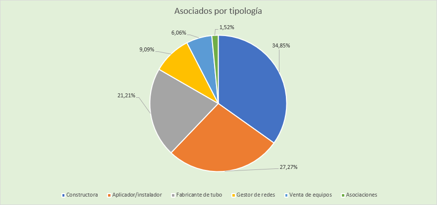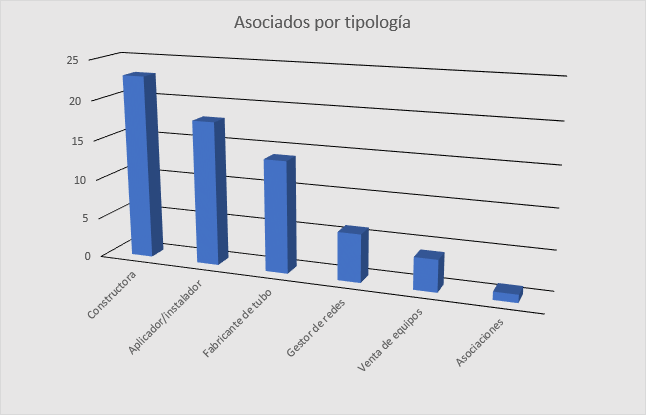 Como su nombre indica abarca la geografía de España y Portugal, toda la Península Ibérica. Actualmente tiene 65 asociados y 60 entidades colaboradoras con los que abarca la mayor parte del espectro del mercado en renovación y colocación de tuberías o servicios lineales, infraestructuras lineales. Tiene asociados fabricantes de tubos de plásticos, de hormigón, de acero, asociados que son fabricantes de equipos de rehabilitación, de instalación, y de localización. También aplicadores de estos productos, que usan estos tipos de maquinaria, o los tipos o productos que fabrican terceros. Constructoras generalistas que están convencidas que las tecnologías SIN zanja son las tecnologías del futuro, y que tienen que estar ahí para empujar el desarrollo y ser punta de lanza. Y también hay empresas prestadoras de servicios urbanos o servicios públicos fundamentalmente del agua y del alcantarillado convencidos de que las tecnologías SIN zanja son y serán una herramienta cada vez más importante en el desarrollo de las ciudades y su actividad.